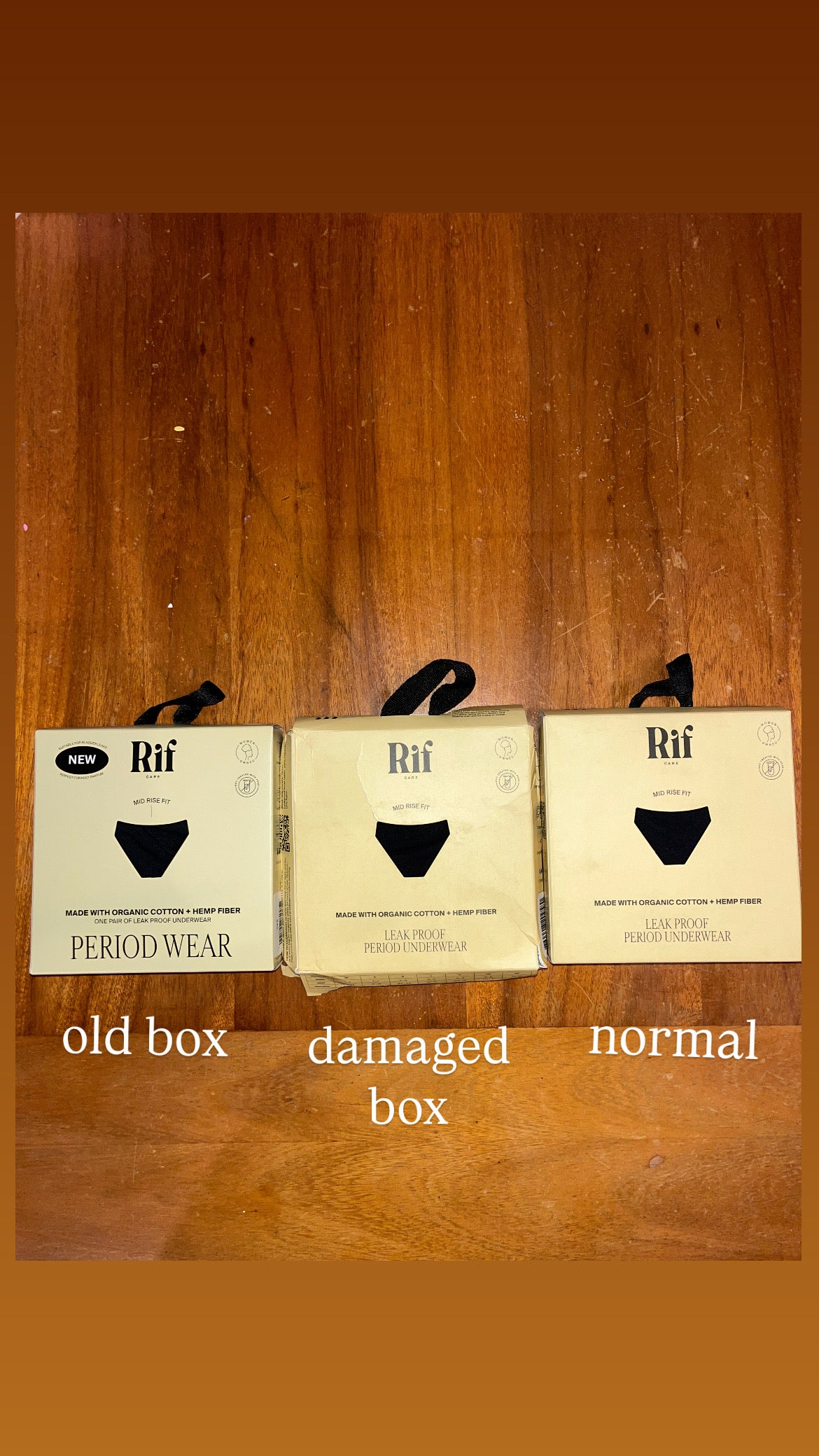 Imperfect? More like perfect for you. These period undies are perfectly perfect leakproof undies that just happened to have a damaged box or old packaging. These are damaged in transit to our warehouse or retail, and instead of trashing them we are offering them to you 40% off. These are final sale.