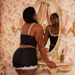 Get ready for the comfiest, most absorbent sleep set for your period. The Venice set does it all. The leakproof bottoms soak up THREE night pads worth of fluid. Perfect for a heavy period day, postpartum mamas, and those of us who need incontinence support. Made with our signature blend of hemp fiber and cotton. The lace detail helps give a sexy pick me up for the days where you need to feel your best.